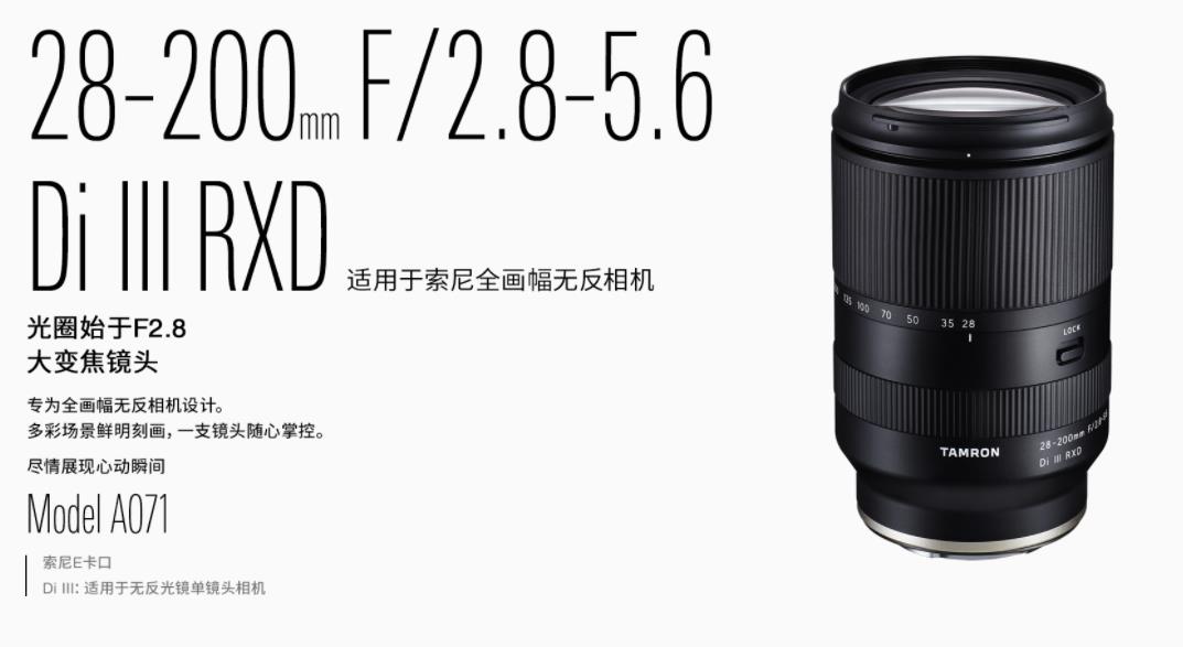 專(zhuān)為索尼E卡口全畫(huà)幅無(wú)反相機(jī)設(shè)計(jì),最大光圈達(dá)F2.8的全能大變焦鏡頭